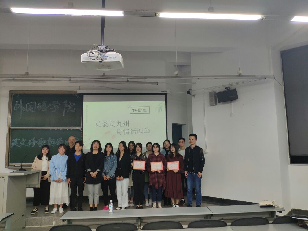 英文诗歌朗诵比赛以“英韵朗九州,诗情话西华”为主题,于4月12日在6B202成功举办。全校共有58组选手报名参赛,本次比赛流程包括初赛和决赛。初赛环节由选手自主准备英文诗歌朗诵,排名前十的选手晋级决赛。决赛由选手抽签抽取我院自主命题的十首英文诗歌进行朗诵,最终角逐出3组选手分别获得一、二、三等奖。