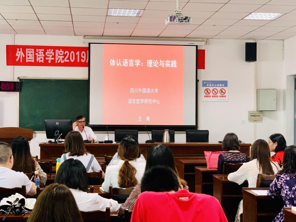 2019年5月23日下午3:00,四川外国语大学王寅教授应邀来到betway88西汉姆联,在4B-111教室作了题为“体认语言学:理论与实践”的主题讲座。