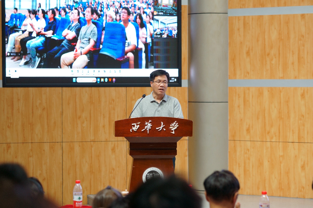 接着,2023级研究生代表杨越千同学发言,他表达了对研究生生活的无限憧憬,分享了自己的大学经历和宝贵建议,鼓励同学们一起适应大学新生活的挑战,不负青春韶华。2023级本科生代表邱语晨进行发言,她表达了对西华大学的热情向往,对探索语言学习之路充满期待,号召大家一起努力学习,坚定文化自信,更好的用外语讲好中国故事。