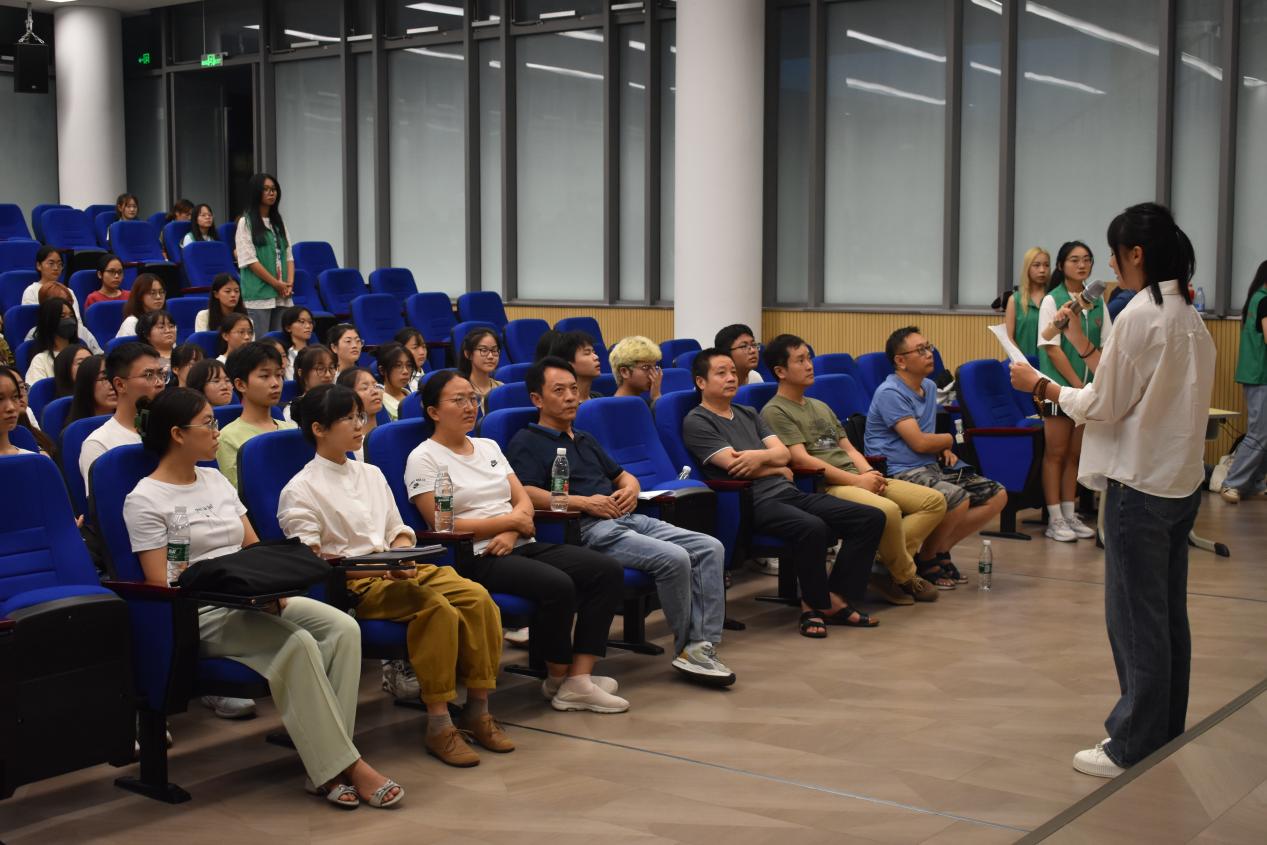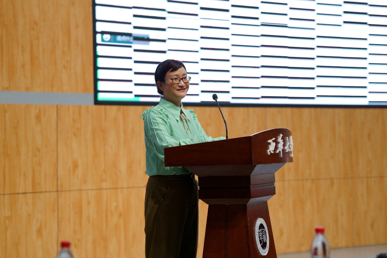 随后,教师代表龚小萍教授发言。龚小萍教授表达了对同学们的希冀和要求,强调了大学的价值和挑战,并鼓励新生们充分利用大学的平台,努力成长为“外语+”复合型人才,不断追求卓越和个人发展。