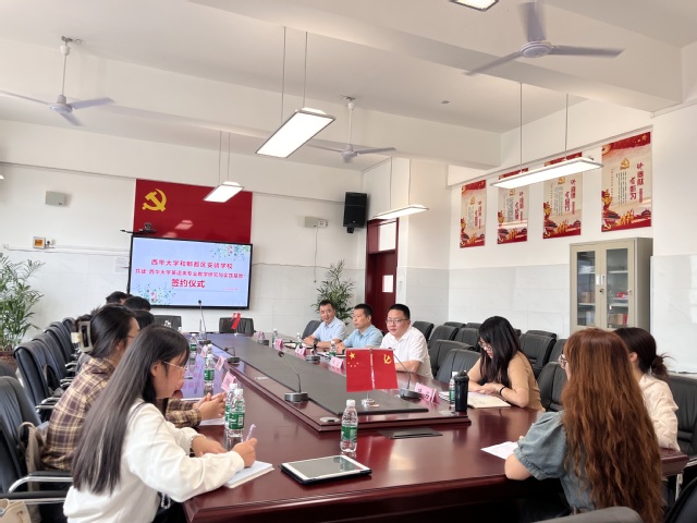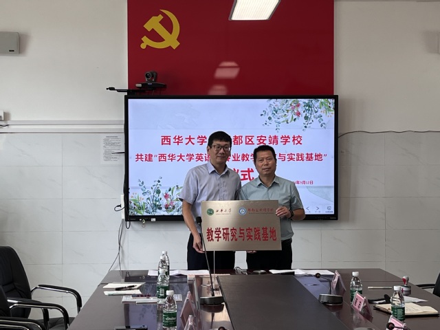 会后,李学芹副院长与喻磊校长签署了实习协议,并授予安靖学校“西华大学教学研究与实践基地”牌匾。