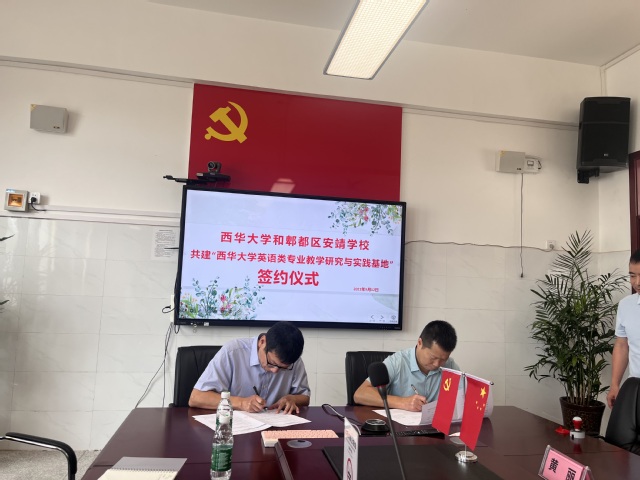 9月12日上午,betway88西汉姆联副院长李学芹、教学办公室主任曾渝理、英语系副主任张玄、20级本科生辅导员罗雨虹以及20级英语及翻译专业5名实习生一行九人前往成都市郫都区安靖学校,参加西华大学和郫都区安靖学校共建“西华大学英语类专业教学研究与实践基地”签约仪式。