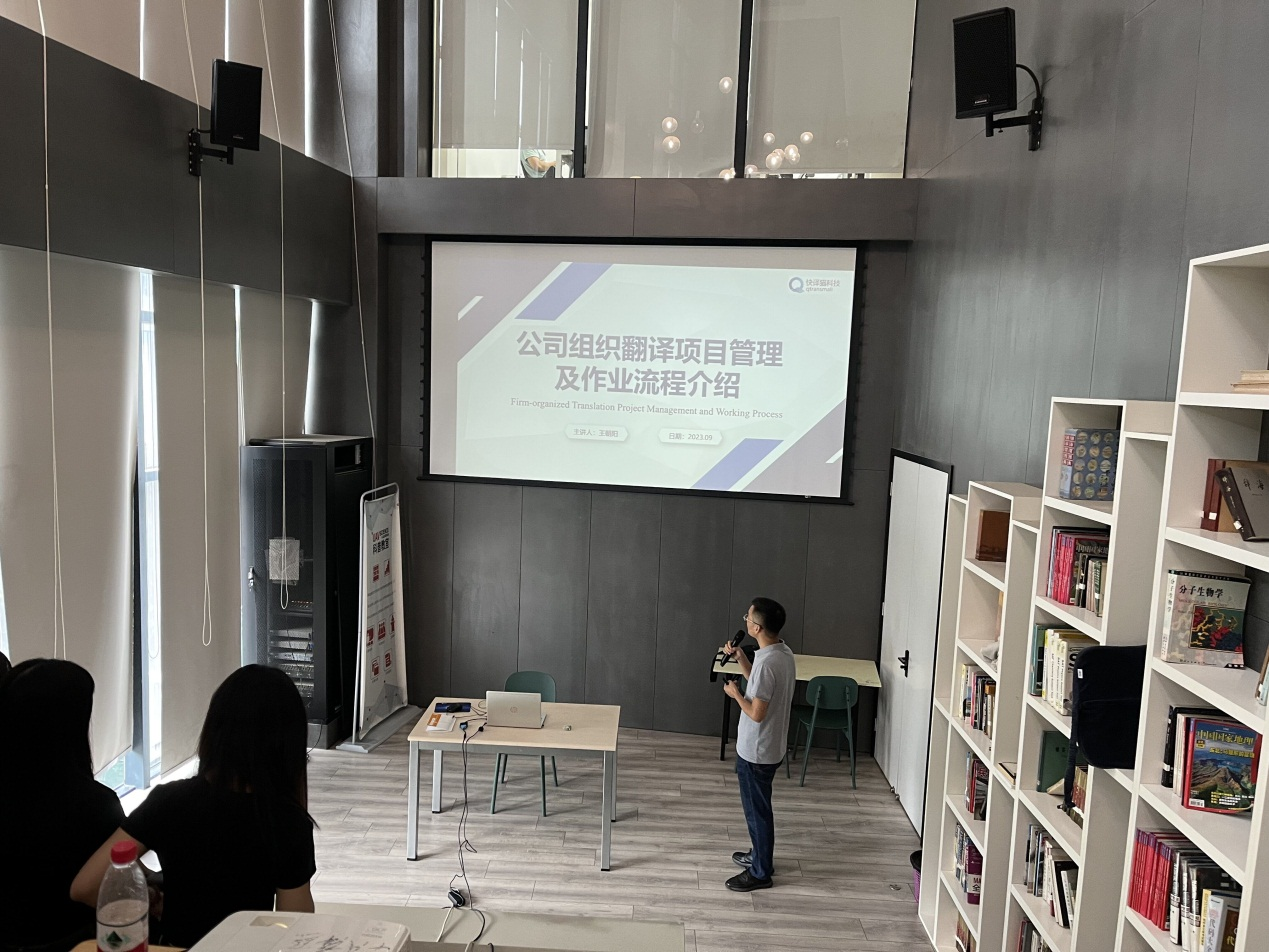 其次,王朝阳老师从项目涉及的角色、项目的总体流程、各角色的职责、翻译常见错误类型四个方面进行介绍,让学生对公司组织翻译项目管理及作业流程有了更深刻的了解。