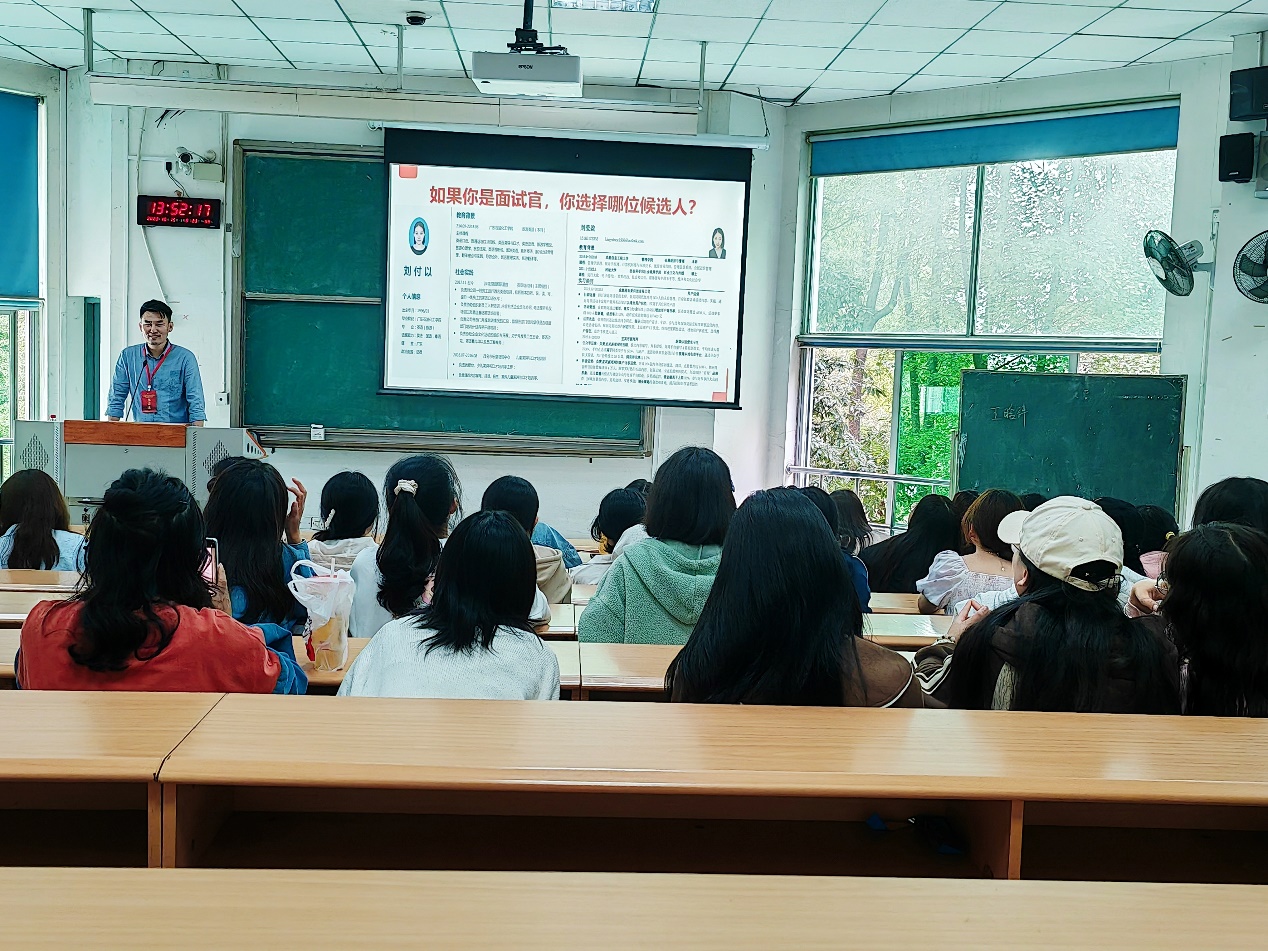 为了提升同学们的简历制作能力,在强内卷时代下脱颖而出,2023年10月15日下午,西华大学betway88西汉姆联校友经验交流分享会在4教B区301教室举行。学院优秀校友任春旺、宋晴受邀出席,活动由罗雨虹老师主持,betway88西汉姆联本科生和研究生出席本次活动。