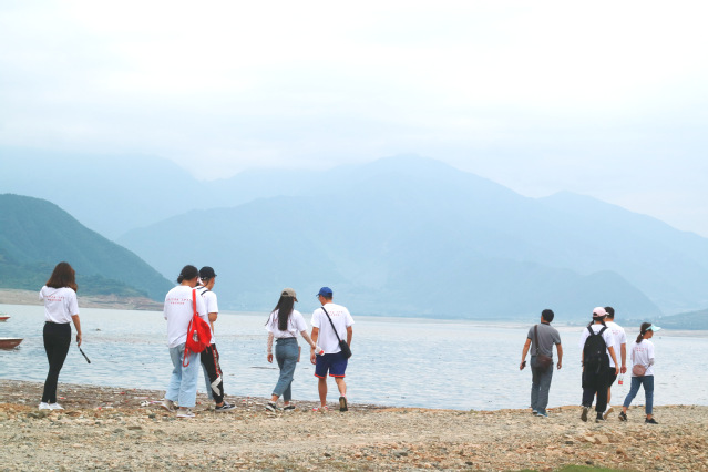下午三点,在冕宁县政协办邓主任的陪同下,团队成员顺利对县北部大桥镇的大桥水库进行了实地考察。大桥水库海拔两千多米,位于安宁河平原,系四川省重点水利建设项目。该水库以供水为主、集农业灌溉与发电综合发展,近年来还衍生出生态旅游的功能。它不仅是安宁河流域群众的生活保障,对于冕宁县在新时代走好新道路、贯彻新理念具有重要意义;还引水入西昌,将为攀西资源开发起到龙头性作用,推动攀西资源全面开发。队员们观察水库地形、考察水质时发现,大桥水库作为一级饮用水源保护地,即便有专人负责定期清洁维护,部分浅滩沿岸由于人为因素或雨水冲刷等自然因素,仍存在垃圾漂聚的现象。小队成员们在此呼吁,青年学子应从自身做起,带动身边人爱护环境,积极践行“绿山青山就是金山银山”的科学发展理念。