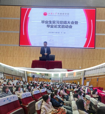 随后,2020级学生代表翻译专业巫智洁、英语专业张仟慧、翻译专业周时依同学就自身实习经历进行了交流分享。教育实习是为应用专业知识、提升教学能力、发展综合素质而搭建的全方位实战训练平台,同学们在此次实习实践中获益良多。实习总结结束后,大会进行第二项议程,梁勇老师讲解了毕业论文双选与撰写注意事项,展示了外院优秀本科毕业论文集。会议鼓励学生“博观而约取,厚积而薄发”,扎实做好毕业论文工作。