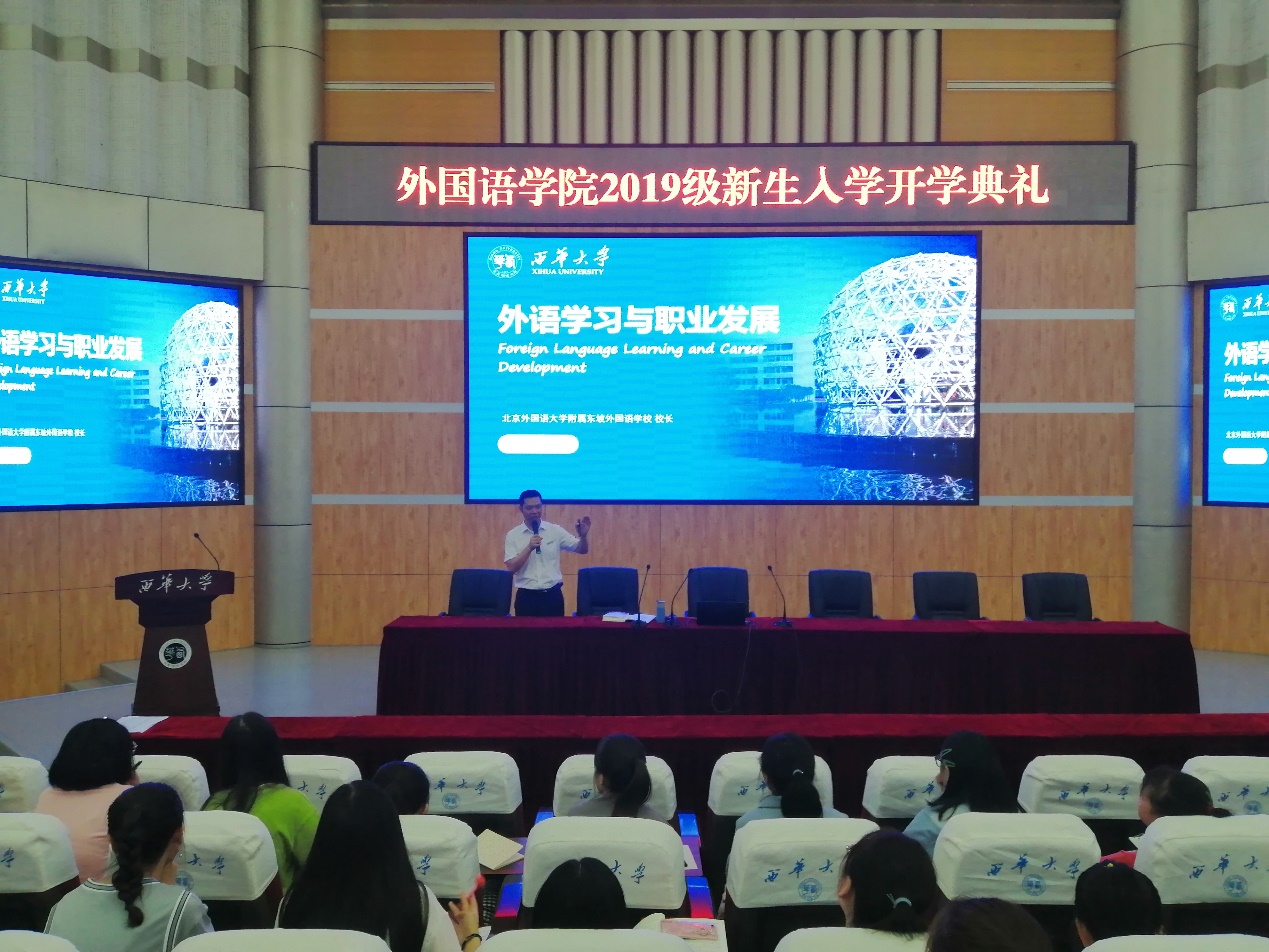 2019年9月9日上午10点,北京外国语大学附属东坡外国语学校陈武校长应邀来到betway88西汉姆联,在四教报告厅做了“外语学习与职业发展”的主题讲座。本次讲座由学院副院长董小莉主持。