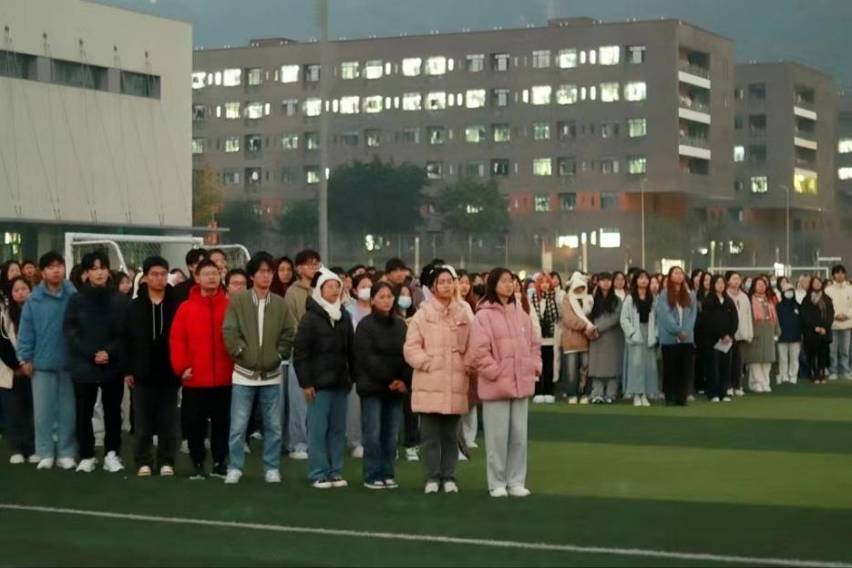 外院学子排队等待升旗仪式的开始