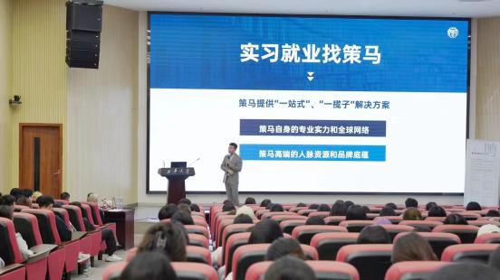 实习就业找策马。策马以自身的专业实力和全球网络、高端的人脉资源和品牌底蕴为同学们提供“一站式”、“一揽子”解决方案。彭老师提到“实习和就业是一个一体两面的问题,实习自然就可以导入到就业,就业的一个最重要前提就是实习”。彭老师从薪资、含金量等方面解答了实习三问与就业三问,并且强调策马实习项目具有“含金量高、项目稳定、无缝衔接”的特点。