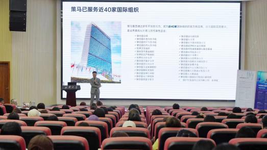 彭老师首先向同学们介绍了何为“实习—就业双核体系”,紧接着从公司介绍、实习就业双核体系、岗位需求、答疑等四个部分依次展开。策马集团与众多重要国际组织联系密切,是联合国官方翻译服务供应商、国际货币基金组织(IMF)官方翻译服务供应商、博鳌亚洲论坛官方翻译服务供应商等。策马集团肩负国际交流使命,是业界具有标杆意义的代表性企业。