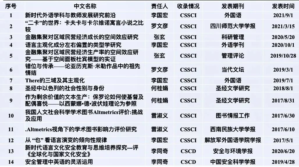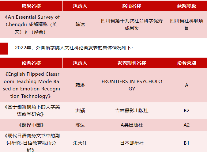 “外国语言学及应用语言学”为校级重点建设学科,英语专业为校级特色专业,现有省级、校级精品课程9门。近三年全院发表论文292篇,出版译著2部,参编教材2部,承担国家、省部、市厅级等科研课题48项,教改项目12项。