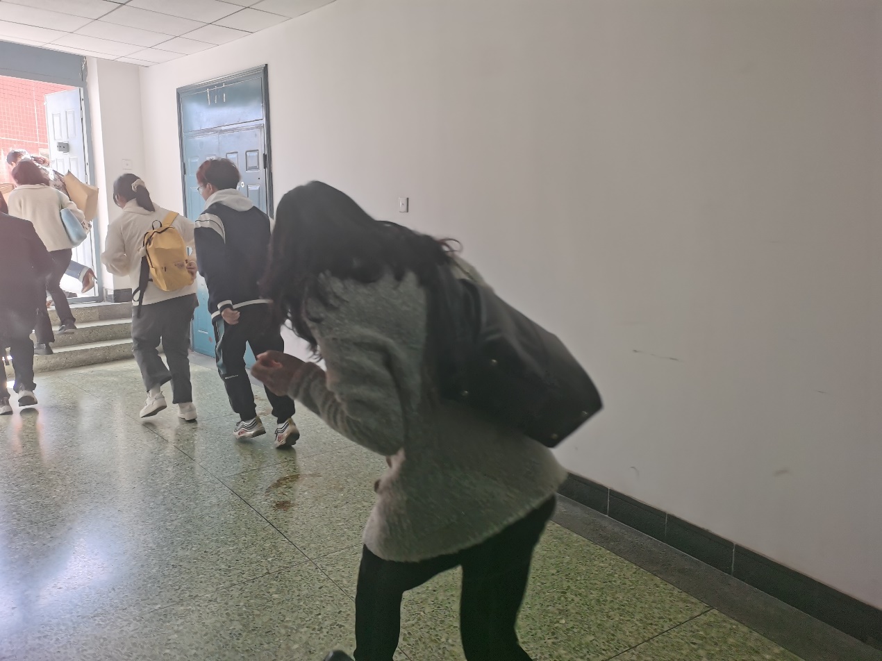 演练前,学院根据《betway88西汉姆联2024年春季消防安全应急疏散演练方案》对师生进行了详细部署,确保演练过程中的安全,并邀请了利民消防局朱教官进行防火安全知识教育。一声令下,演练正式开始,模拟消防警报响起,学院领导小组立即启动应急预案,现场总指挥重复发布指令“现在学校4C504教室发生火灾,全体师生立即向明德广场疏散”。听到警报声的疏散引导组马上到达了指定位置,组织引导师生分两路纵队向一楼出口空旷处有序撤离。疏散过程,救护组不断提醒师生“猫腰、护头、掩鼻”,“注意脚下,防止滑倒,保持秩序,不要拥挤”……现场指挥组和警戒组在最短的时间内组织师生有序、快速地撤离到应急疏散集合地后,场地指挥组迅速清点人数并向此次演练总指挥汇报情况,确保无一遗漏。