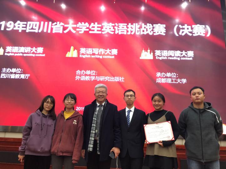 经过选拔2017、2018级翻译专业何梓锴、梁朱丽,2017级英语专业何兆婷,2018级软件工程专业谢宇,2017级工程造价专业彭宇代表西华大学参加此次比赛。