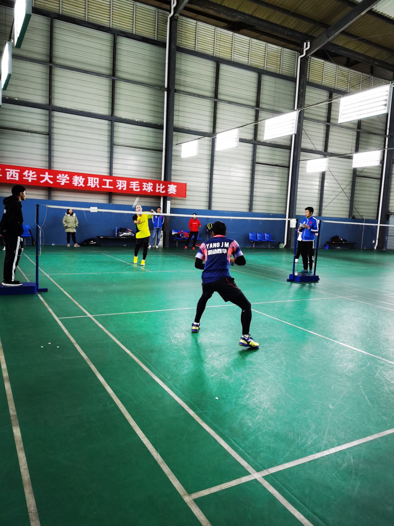 2019年11月13日晚,随着裁判员一声响亮的“比赛结束",最后一场男单决赛结束。至此,历时三周的2019年西华大学教职工羽毛球赛圆满落幕。本次比赛由校工会主办,校教工羽毛球协会承办,体育学院羽毛球专项老师和学生给予了裁判支持。赛事分为男子单打、男子双打、女子单打和双混合打四个项目,共有来自各分工会约40余位选手参加了比赛。我院的林晨军老师和李同奇老师报名参加了男子双打和男子单打项目。比赛中,他们顽强拼搏,奋勇争先,赛出外语学院的风格和水平,最终林晨军和李同奇男双获得三等奖,李同奇男单获得二等奖。参赛的两位老师表示,由于平时教学任务重,身体锻炼没有跟上,参加这次比赛,既能丰富了自己的课余生活,实现了锻炼身体的目的,又增进了和其他各个学院老师之间的沟通交流,也培养了大家共同的文化体育爱好,这无疑会给大家带来积极,阳光,健康,活力和协作的正能量,促进更加和谐团结的校园氛围,让大家能用更加饱满的状态来完成学校学院的各项工作,建议以后学院能有更多的老师参与进来。
