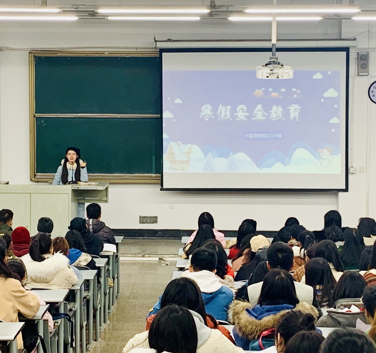 为了确保寒假期间校园的安全稳定,提高学生安全意识,2019年1月6日中午13:00,betway88西汉姆联2019级本科寒假安全教育大会在6B307顺利举行。此次大会,由辅导员彭陈丽老师主讲,2019级本科全体同学参加。