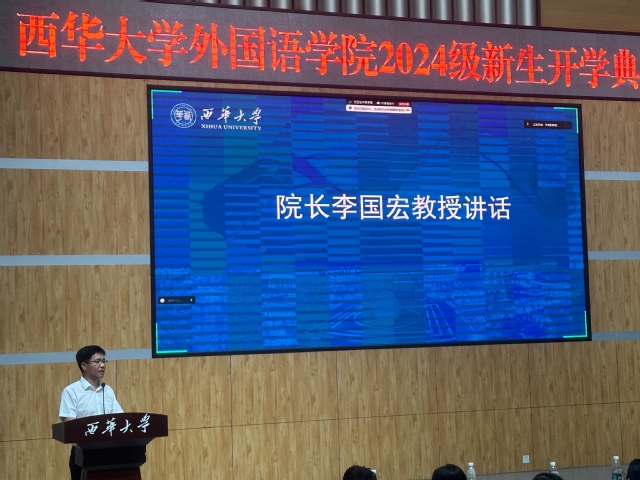 为迎接和祝贺2024级新生圆梦西华,为培养具有国际视野、家国情怀深厚的人文社会功底以及以创新精神为根本的高端应用型外语人才,2024年9月11日,西华大学betway88西汉姆联于四教报告厅(郫都校区)、学术交流中心103报告厅(宜宾校区)两地连线,共同开展2024级新生开学典礼。