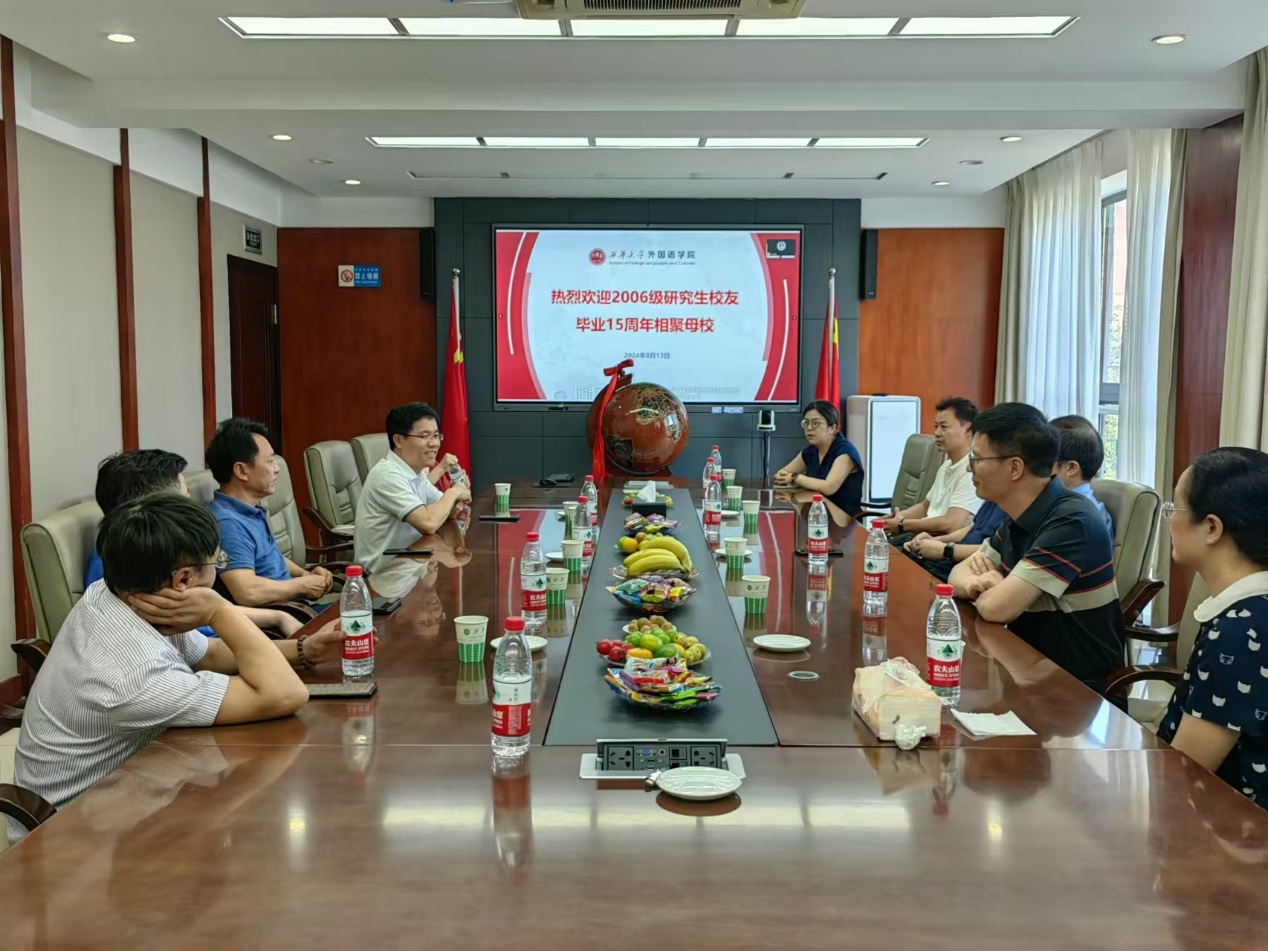 夏日炎炎、情意绵绵,2024年8月13日,西华大学betway88西汉姆联2006级研究生校友毕业15周年返校师生座谈会在学校行政楼412会议室顺利举行,学院领导、2006级研究生辅导员及教师代表与返校校友们欢聚一堂、重温师生情谊、共话美好未来。