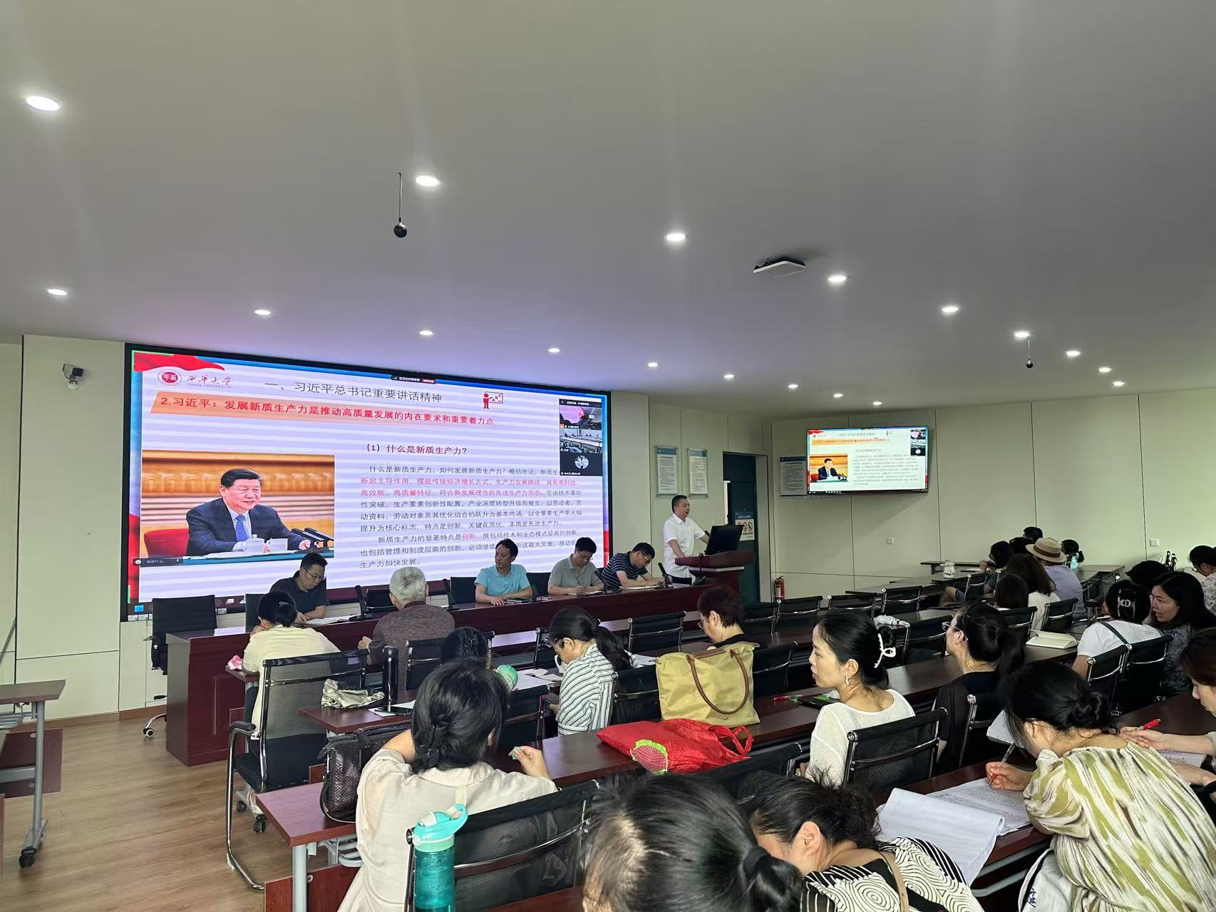 除工作部署外,本次大会还进行了教职工政治理论学习。由副院长叶林果主讲,学习内容涵盖了习近平总书记关于全面深化改革开放、发展新质生产力的重要讲话精神,省委十二届五次全会的精神以及教师队伍建设的相关重要文件。