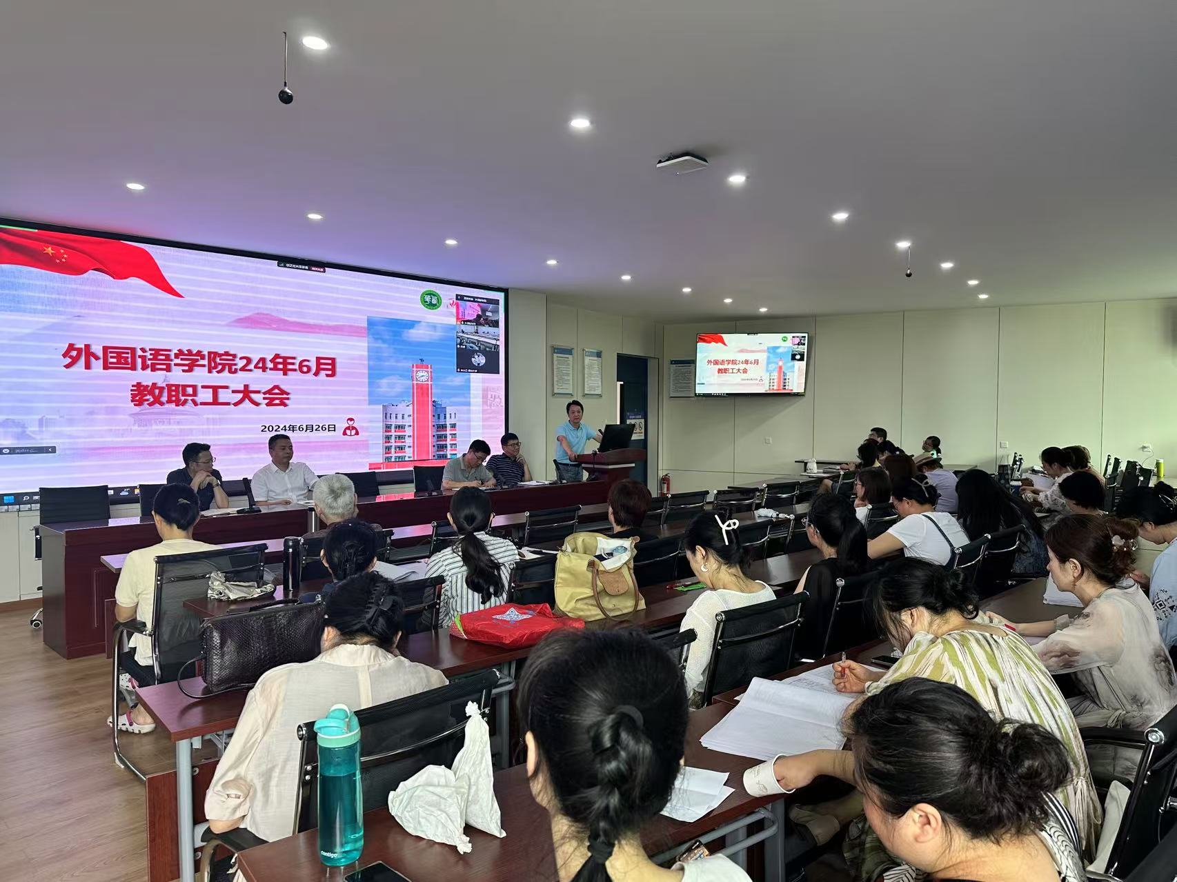 2024年6月27日下午,betway88西汉姆联全体教职工大会在郫都校区4C504和宜宾校区会议室同步召开,会议由院长李国宏主持。此次会议重点对近期学院各项工作进行了部署,并组织了教职工政治理论学习。