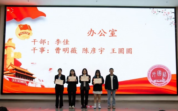 之后,在热烈的掌声中,团总支副书记曾琬麟宣读了西华大学betway88西汉姆联宜宾校区第四届团总支干部、干事名单,黄攀老师为他们一一颁发了聘书。