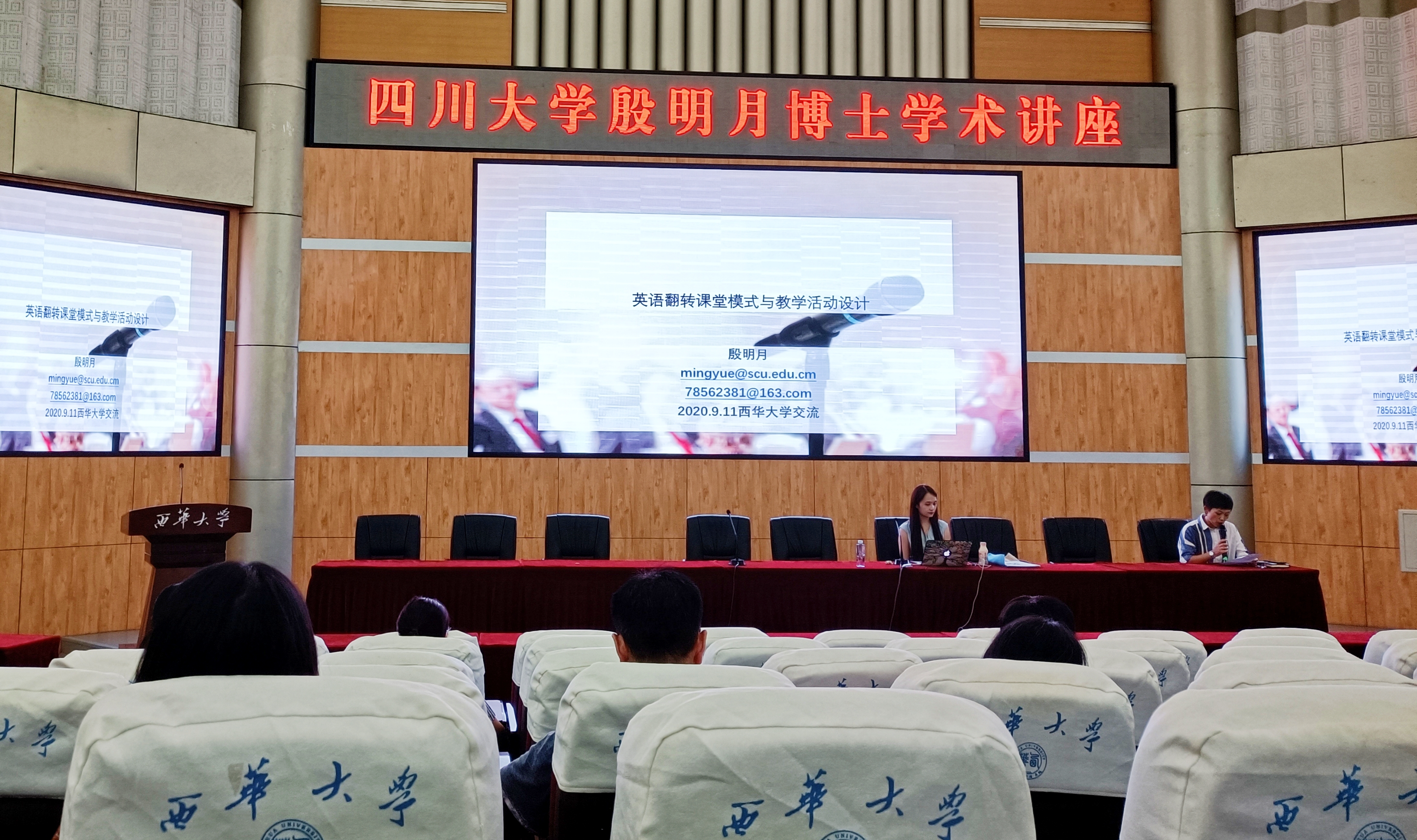 2020年9月11日下午14:00—16:00,四川大学殷明月博士应邀于西华大学四教报告厅开展了关于“英语翻转课堂模式与教学设计活动设计”的学术讲座。讲座由betway88西汉姆联副院长董小莉主持,参加此次讲座的主要有betway88西汉姆联的教师、2019级翻译硕士研究生。