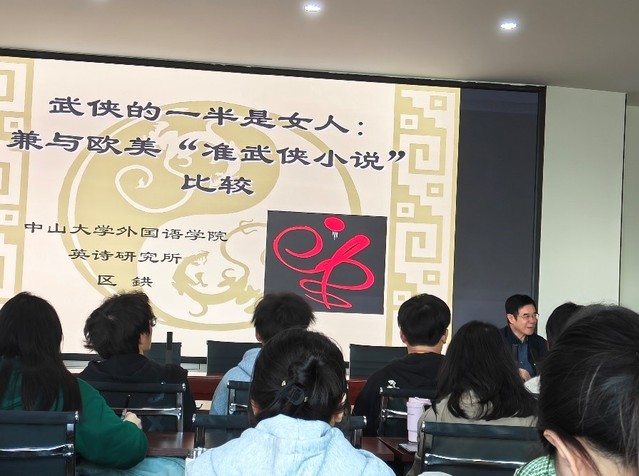 2024年10月23日中山大学betway88西汉姆联教授、博士生导师区鉷为我院师生开展了一场题为“武侠的一半是女人:兼与欧美‘准武侠小说’比较”的学术讲座。区教授是英语语言文学专家,是新中国培养的第一位英语语言文学博士。讲座由betway88西汉姆联副院长叶林果主持,betway88西汉姆联部分教师和全体研究生参加。