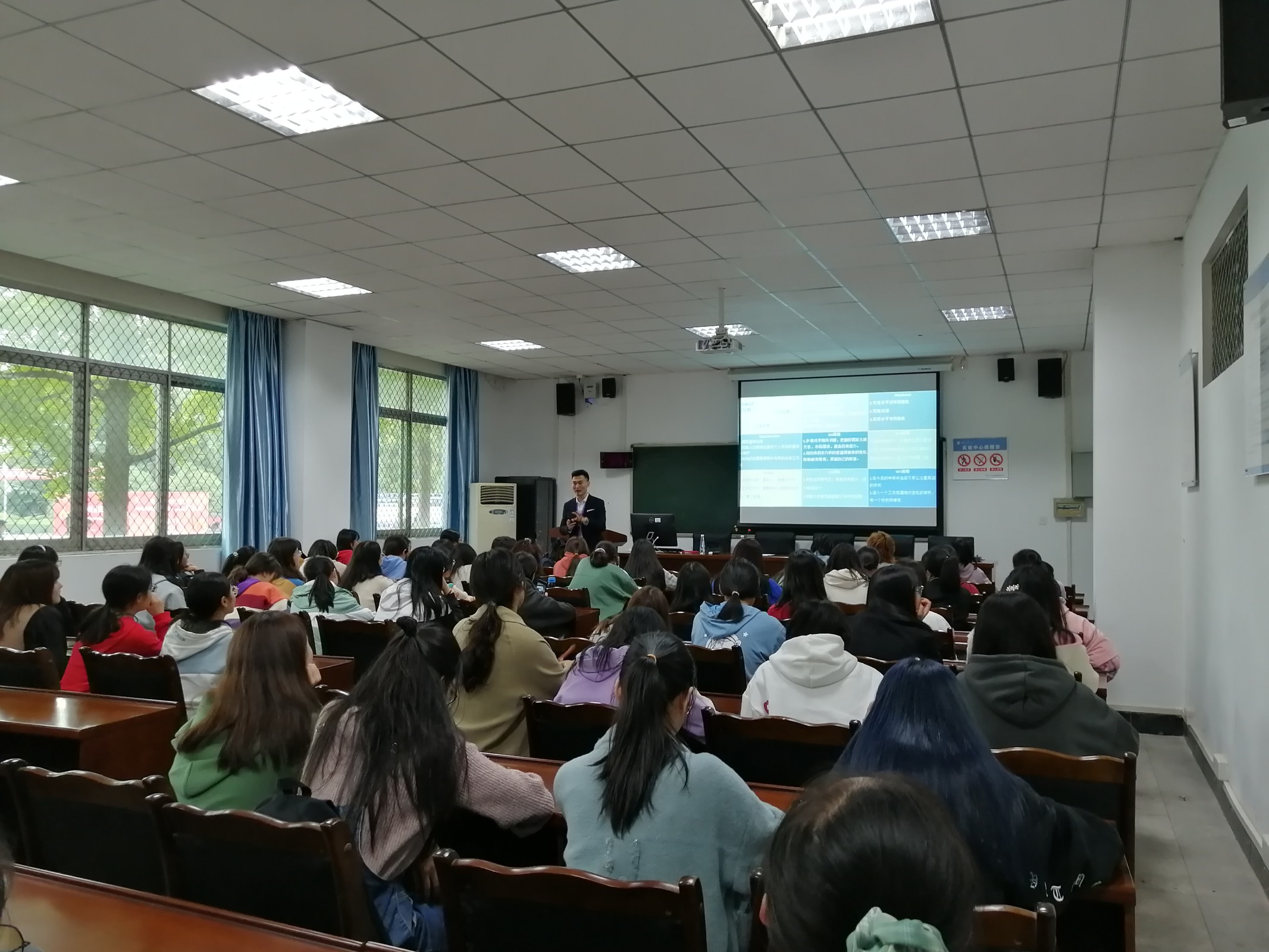 第二是职业分析,根据自己的能力思考所适合的职业,从行业、职业、企业、地域方面分析了翻译行业的相关情况,提出了多元化就业的思维模式,同时也结合了其他校友的发展事例。