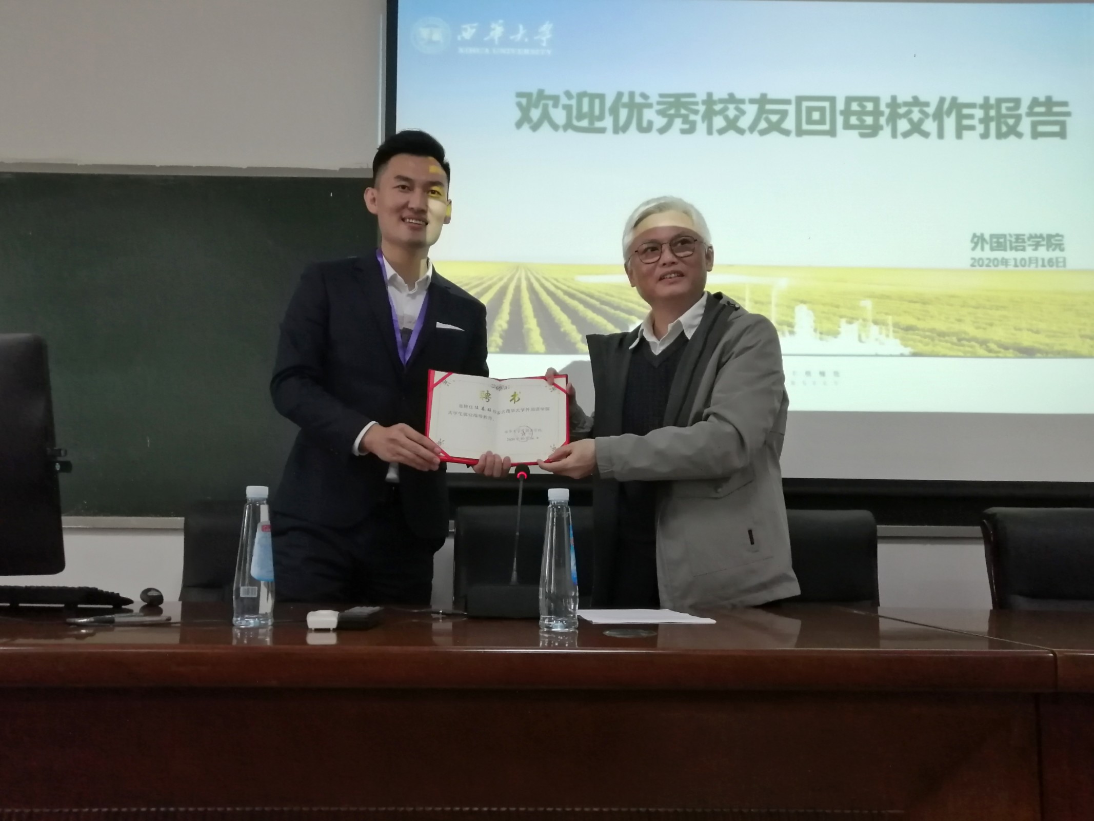最后,任春旺校友感谢了学校通过举办校友年会和校庆活动把他和校友们联系在一起,也表达了作为一名西华人对母校的感恩之心,自豪之情。座谈会的整体氛围轻松愉快,互动颇多,同学们也受益匪浅,在一阵阵掌声中,此次座谈会落下帷幕。