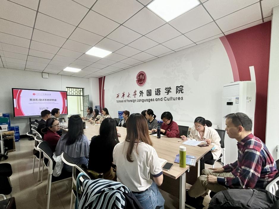 随后,翻译系主任李华英就翻译专业的实践课的安排进行了意见征集与讨论,还对下学期宜宾校区教学任务的落实进行了说明,并听取和收集了老师们针对教学效果、教学方式改革等的建议。