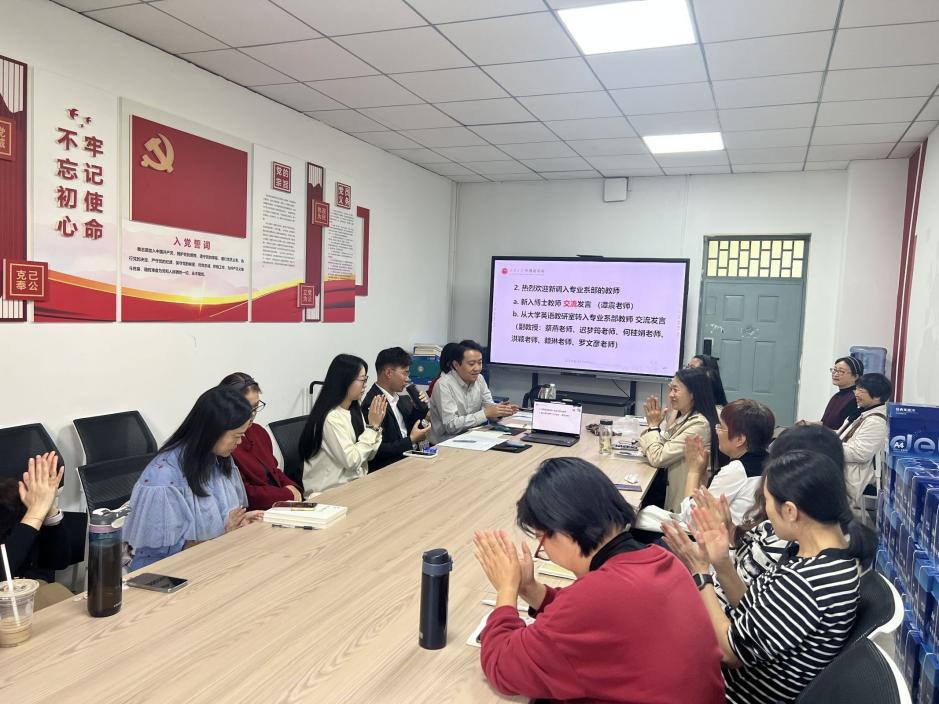 此外,英语系主任梁勇再次强调了做好本次本科教育教学审核评估工作的相关要求,指出应从基本材料、教学档案、支撑材料、引导性材料四个方面做好全面准备,在教学中“以学生为中心”为出发点,更好地熟悉校情校史、所在岗位工作职责、所在专业建设情况、参与学生培养服务情况等并做好相关预案。本次会议还请专业系部新进博士谭震老师进行了交流发言,老师们对谭老师的加入表达了热烈欢迎。此后,系部老师们对2024级本科新生课程上课情况进行了综合分析与研讨,张诗、刘安全、邓舒丹、王朝培、甘熙婷、冯智娇、程一丹等老师分别就听力、口语、阅读、写作、综合英语等课程的任课情况进行了充分交流,深入分析学生特点,进一步提升教学效果和人才培养质量。本次教研活动内容丰富,气氛热烈,取得了良好成效。