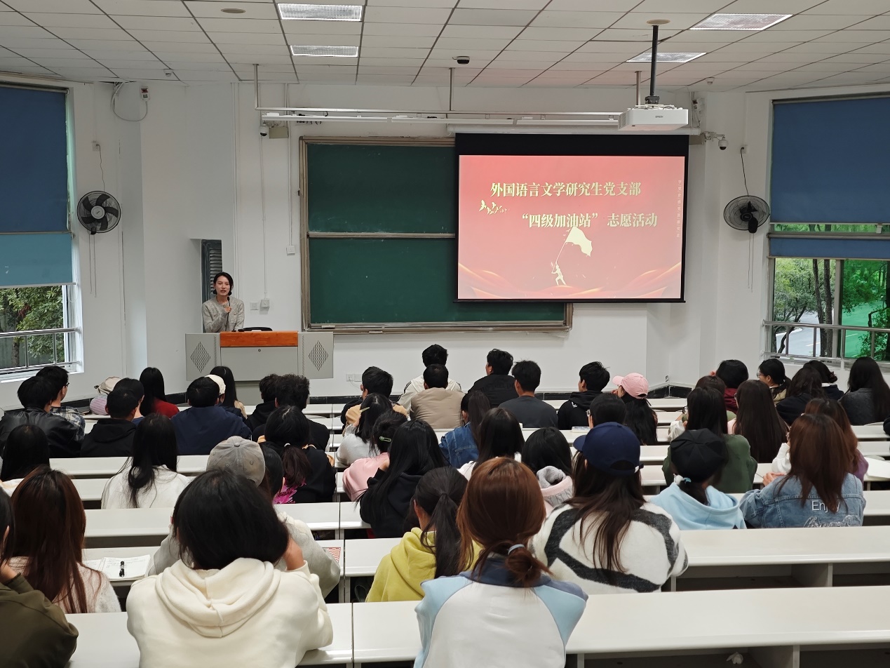 临近大学英语四六级考试,校园内掀起了积极备战的热潮。为发挥党员的先锋模范作用,彰显党员的服务意识,betway88西汉姆联外国语言文学研究生党支部于11月7日下午开展了党员特色志愿服务——“四级加油站”(第一期),面向马克思主义学院大一本科生进行大学英语四级备考帮扶,通过系统的语法、阅读、写作等板块的针对性巩固练习,切实提升同学们英语综合能力,助力马院学子顺利通过大学英语四级考试,为学校申博重点学科提供支持。