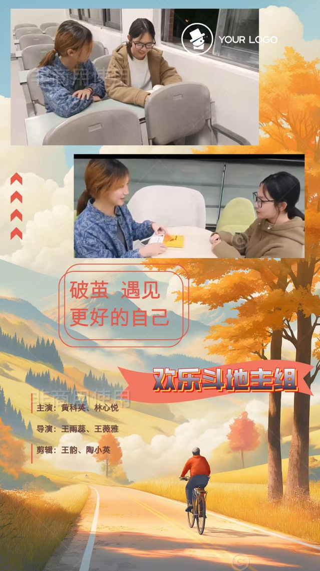 参赛作品简介:向阳,一个小镇女孩,初入大学便一头扎进学习,视其为人生唯一方向。她独来独往,与外界隔绝,内心被外貌焦虑填满,极度缺乏自信,他人目光如芒在背。幸得室友们暖心陪伴与鼓励,她慢慢卸下心中重负,告别封闭自我。从此,她不再为容貌而忧,自信取代焦虑,亦挣脱学习的桎梏,投身社团活动,让大学生活焕发出绚丽光彩,如破茧之蝶,向阳而舞,绽放新生。