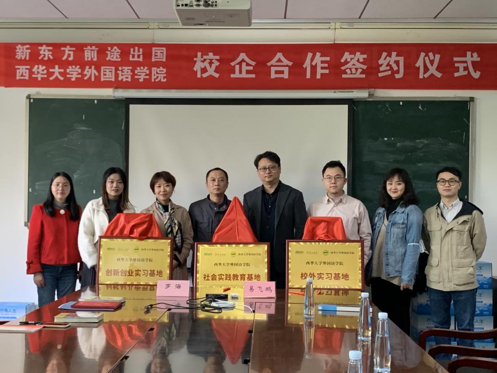 为进一步加强校企合作,提升学生的综合竞争力,培养国际性创新卓越人才,提升betway88西汉姆联的深造求学与就业力,betway88西汉姆联从提升教育教学质量、拓宽学生就业市场等角度出发,与成都新东方前途出国达成协议、授牌其为我院校外实习基地、社会实践教育基地、创新创业实习基地。