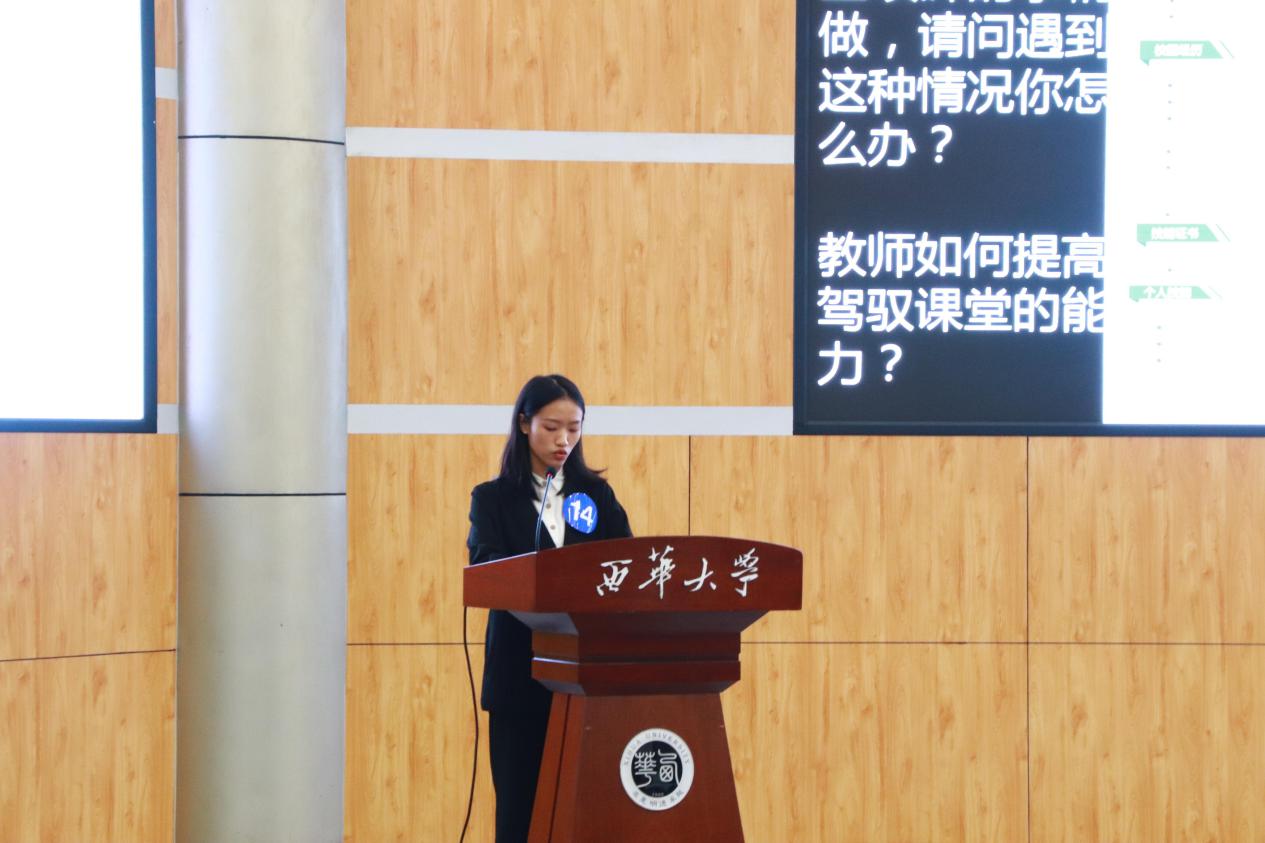 比赛现场,选手们针对自己抽取的问题做出了自己独到深刻的见解。每位选手从容自信,应答如流,现场观众掌声不断。充分展现了西华学子昂扬向上的精神风貌。