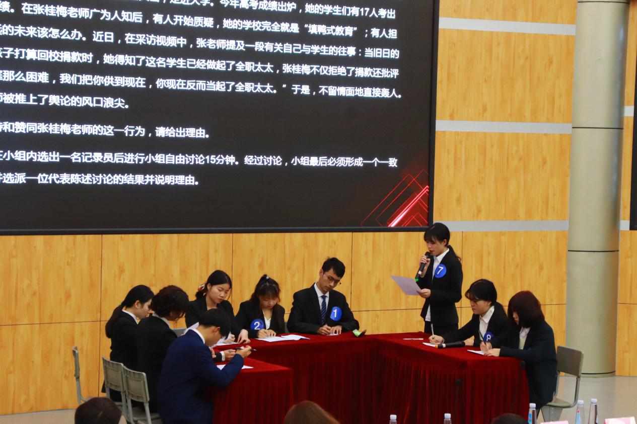 小组讨论环节,组员们热情满满,分别提出自己对所示材料的见解。充分展现出思维碰撞出火花,团队创造出财富的画面。这也契合此环节比赛的主旨:一群人才能走得更远!