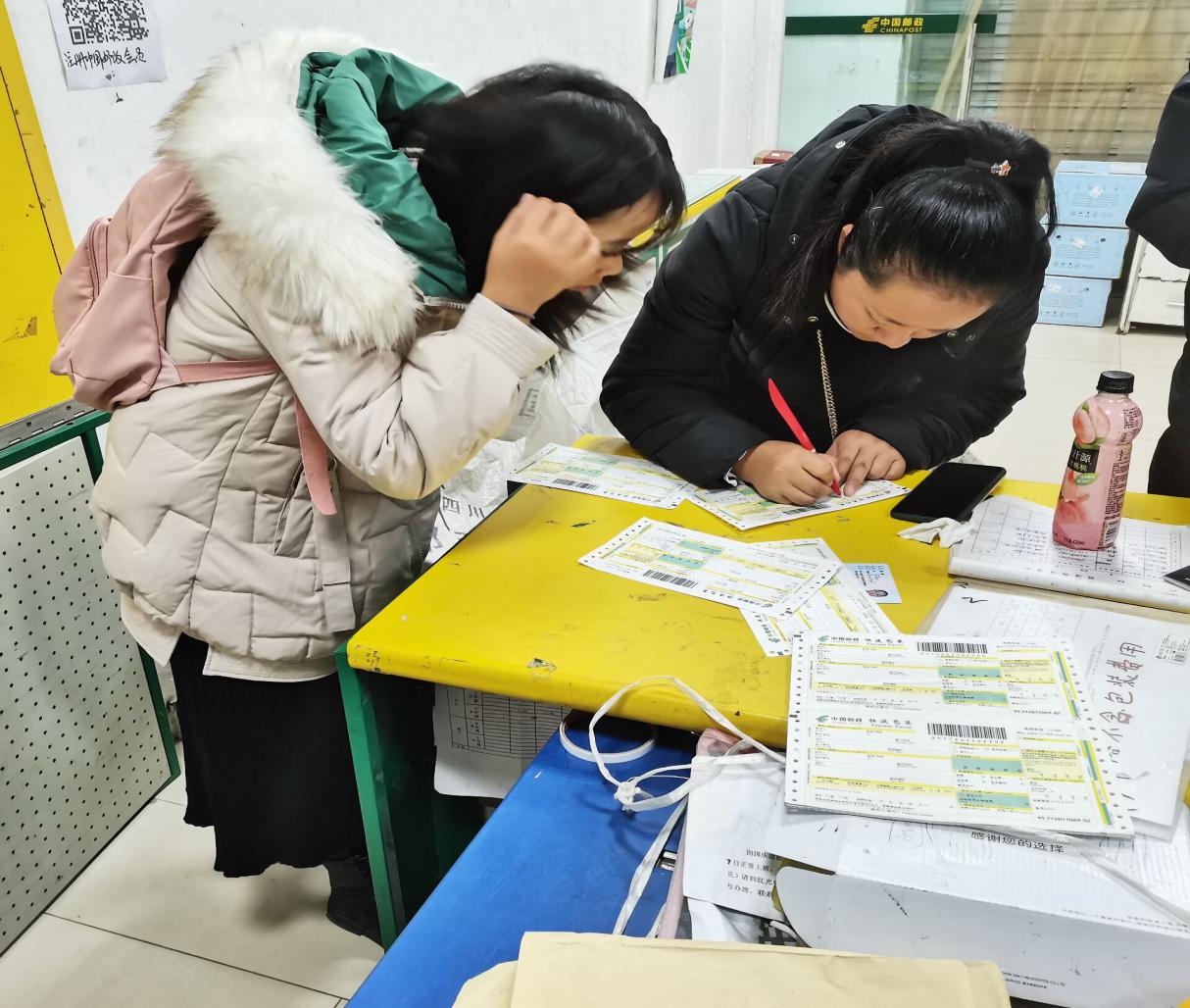 (志愿者们将衣物寄出)