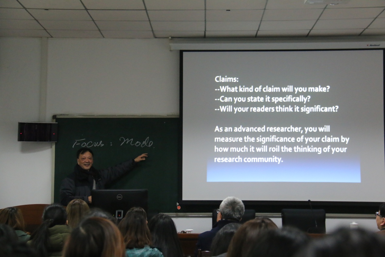 12月23日星期五上午10点40分,四川大学betway88西汉姆联的石坚教授以“‘能力与素养’ ---研究生的学术修养兼谈英语专业的教学改革”为题,为同学们做了一场一个半小时的精彩讲座。