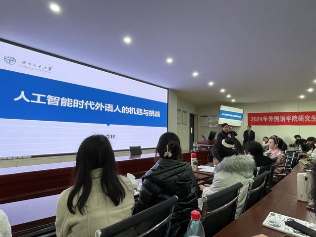 2024年11月29日下午3时,betway88西汉姆联在4C-504教室成功举办了一场题为《人工智能时代外语人的机遇与挑战》的学术讲座。此次讲座特邀西南交通大学betway88西汉姆联院长俞森林教授作为主讲嘉宾。讲座由betway88西汉姆联院长李国宏教授主持,betway88西汉姆联部分老师和2022级、2023级、2024级全体研究生参加了此次学术讲座。