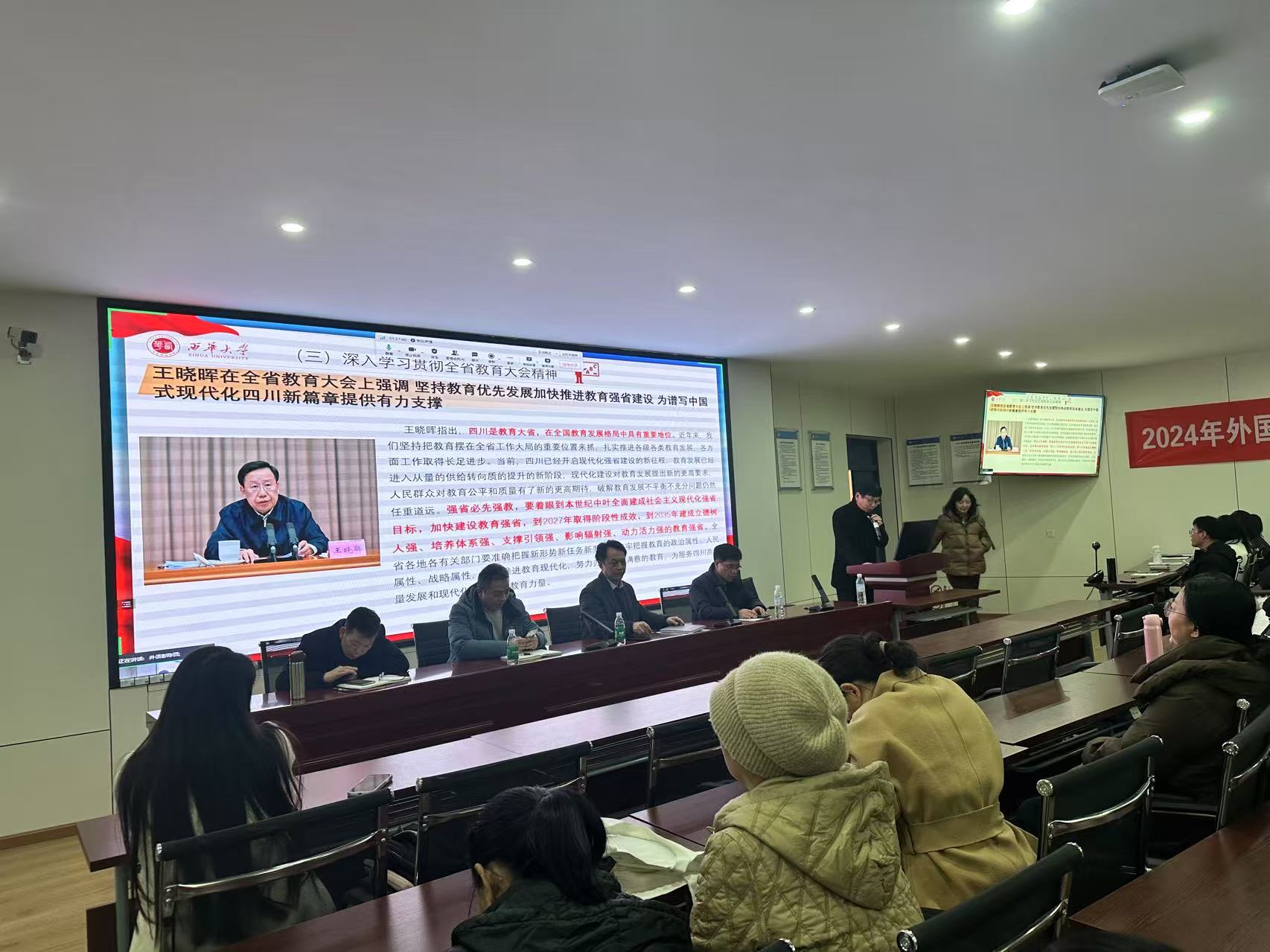 2024年12月19日下午,betway88西汉姆联全院大会在郫都校区4C504会议室和宜宾校区会议室同步举行。本次大会由学院党委书记唐润华主持,全体教职工参加,旨在开展本年度领导干部述职测评考核工作。