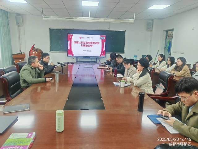 2025年3月20日,为深入推进科研创新工作,助力国家社科基金项目申报,西华大学betway88西汉姆联在317会议室召开国家社科基金申报推进会暨科研发展研讨会。会议采用线上线下结合方式,学院领导班子、各教研室负责人、教师党支部书记及近3年新进博士教师等20人现场参会,宜宾校区教师同步线上参与。会议聚焦科研发展规划与基金申报指导,共谋学院科研高质量发展新路径。