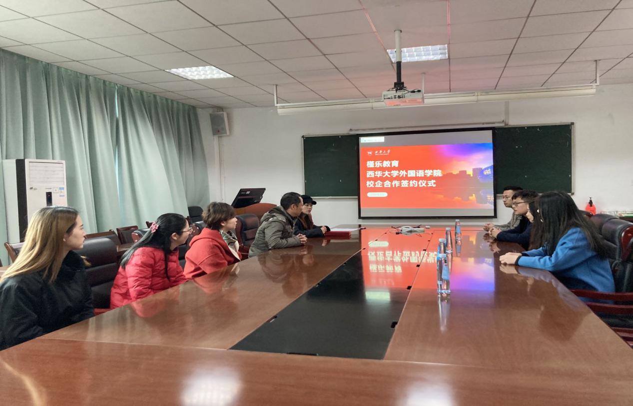 槿乐教育咨询有限公司总经理倪龙玉玺、黄柯老师、孙玉汝老师与我院党委副书记罗海、学工办主任曾渝理以及辅导员杨磊、彭陈丽、罗雨虹老师在学院会议室举行了此次签约仪式暨授牌仪式。