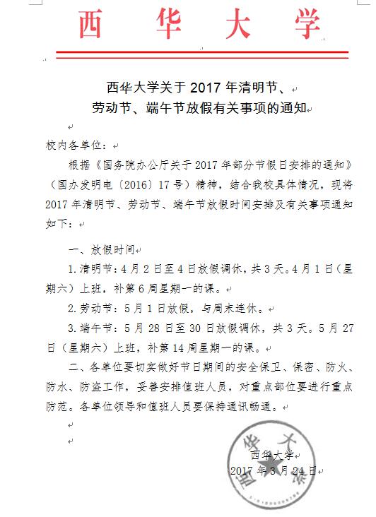 清明节、劳动节、端午节放假有关事项的通知