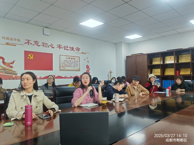2025年3月27日,西华大学betway88西汉姆联英语系、翻译系全体教师在学院317会议室联合召开了2024-2025学年第2学期教研例会,宜宾校区教师线上同步参加。学校督导组代表向兰老师莅临指导工作,学院党委副书记万志昂、副院长李学芹参会。本次会议围绕政治理论学习、科研提质、教学改革及人才培养等核心议题展开深入研讨。