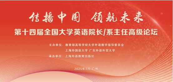 本次论题由教育部高等学校大学外语教学指导委员会、上海外国语大学、广东外语外贸大学共同主办,上海外语教育出版社承办。本届论坛主题为“传播中国 领航未来”,旨在探索大学英语教学如何以课程建设为基石、以新型数字平台为抓手,让语言能够在交流思想、增进理解的过程中发挥更大能量,让个性化教学模式能够更大限度激发学生自主学习动能,为助力构建具有中国特色、国际视野的外语教学体系积蓄力量。