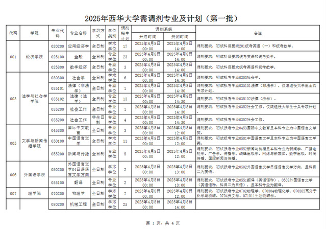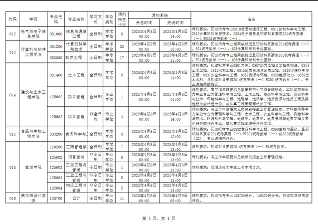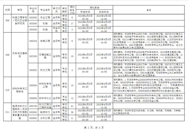 3.调入专业与第一志愿报考专业须同属一个学科门类(专业代码前两位相同),专业代码前两位为14的交叉学科可跨学科门类调剂;