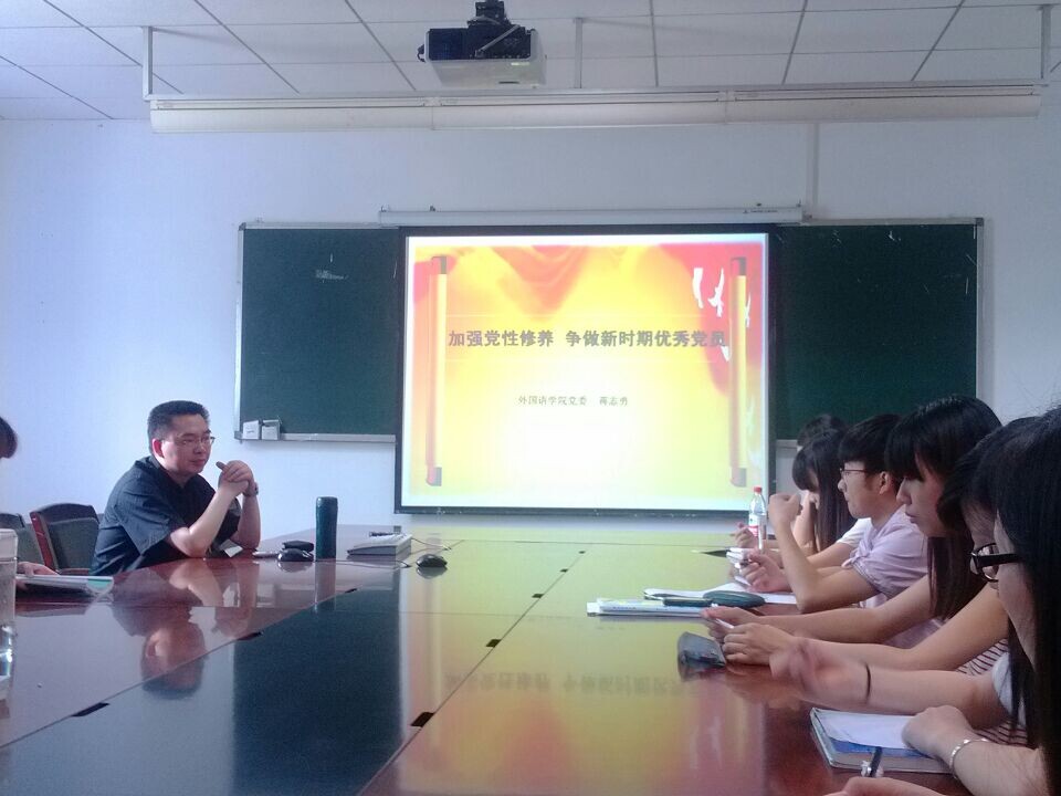 5月29日中午,betway88西汉姆联党委书记蒋志勇给学院参加预备党员培训的学员们上了一堂“加强党性修养,争做新时期优秀党员”的主题党课。