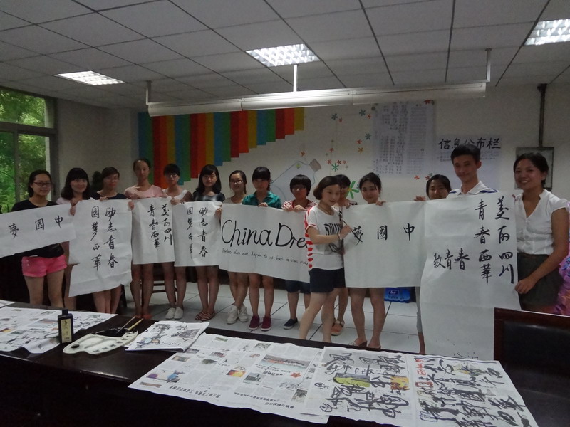 最后,同学们铺开宣纸,用毛笔写下自己的“中国梦”。曾国勇副书记也书写下了“励志青春,圆梦西华”的愿景,表达了对学生党员们实现自我理想的美好祝愿。