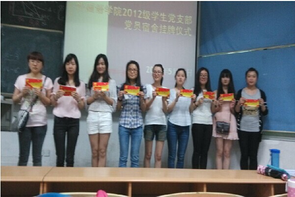 为了增强学生党员的党员意识,加大对学生党员的监督力度,促进学生党员的模范带头作用,同时,以党建为龙头,深化学院学风建设。5月20日,betway88西汉姆联学生党总支牵头,在学生支部开展以“一名学生党员,一面先锋旗帜”为主题的“学生党员寝室挂牌”活动。