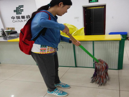 第二次活动是在4月20日早晨9点,大家在邮局门口集合后,班长向丽简单说了活动的纪律后,大家便行动了。这次活动的主要内容是打扫邮局和收发室的卫生并力所能及地为工作人员们提供一些帮助。出人意料的是,大家都十分积极,按部就班的找到自己负责的区域,并动手整理起来。更让人欣慰的是,工作人员和学员们一起动手,共同清扫。场面十分温馨。打扫时间大概持续了半个小时,我们负责的区域变得干干净净,工作人员们十分高兴,学员们也十分积极热情。这次活动虽然时间持续时间不长,但是从大家高昂的情绪可以体会到这次的活动是十分有意义的。
