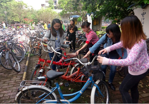 此次的社会实践一共分成两个板块,第一个板块是去德馨苑1到6栋宿舍楼下扶自行车,此次活动的目的在于改善寝室楼下自行车摆放乱、差的现象,为营造良好的校园及寝室环境。再参加完党课培训后,大家在外面集合,班长向丽重点讲了活动过程中的纪律以及此次活动的意义,并且分配了任务,参加活动的小组共六组(每一个小组负责一栋楼下的自行车)。值得一提的是,虽然4月16日下午天气很热,温度很高,没有避暑的地方,但是没有一个学员抱怨,大家都默默地扶着自行车。经过大家的一齐努力,寝室楼下的自行车摆放得整齐了。